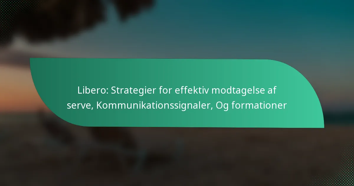 Libero-spillere skal anvende klare kommunikationssignaler for effektivt at koordinere med holdkammerater under situationer med modtagelse af serv. Disse signaler forbedrer teamwork og sikrer, at alle er opmærksomme på deres roller og ansvar på banen.