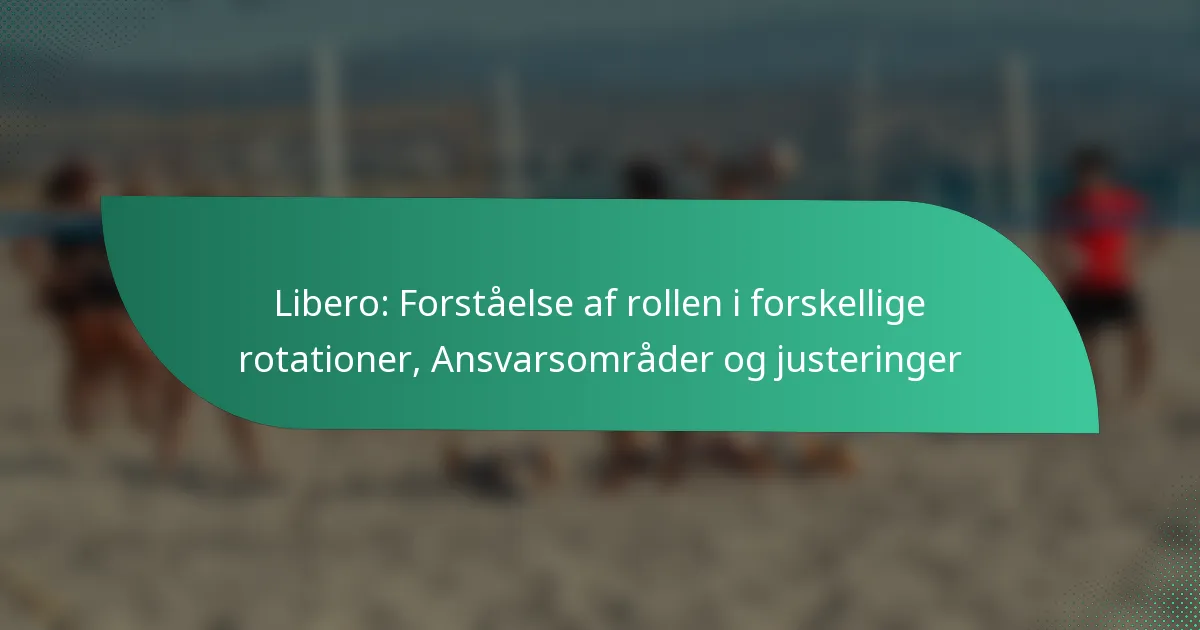 Liberoen er en specialiseret defensiv spiller i volleyball, der er essentiel for at forbedre holdets forsvar og håndtere modtagelse af serv. Deres rolle varierer betydeligt mellem forskellige rotationer, såsom 5-1 og 6-2 formationer, hvilket påvirker holddynamik og positioneringsstrategier. Effektiv kommunikation og lederskab er afgørende for en libero, da de skal kunne skifte problemfrit mellem angreb og forsvar, mens de integrerer sig i holdets overordnede strategi.