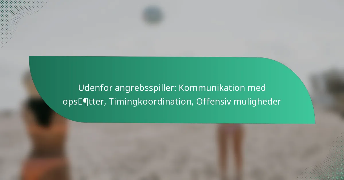 Den udendørs angriber spiller en central rolle i et volleyballholds angreb, hvor fokus er på at angribe fra forreste række og ofte lede i scoring. Effektiv kommunikation med opsætteren er afgørende, da det involverer både verbale og non-verbale signaler, der forbedrer timing og koordinering, hvilket i sidste ende maksimerer angrebsoptioner og scoringspotentiale.