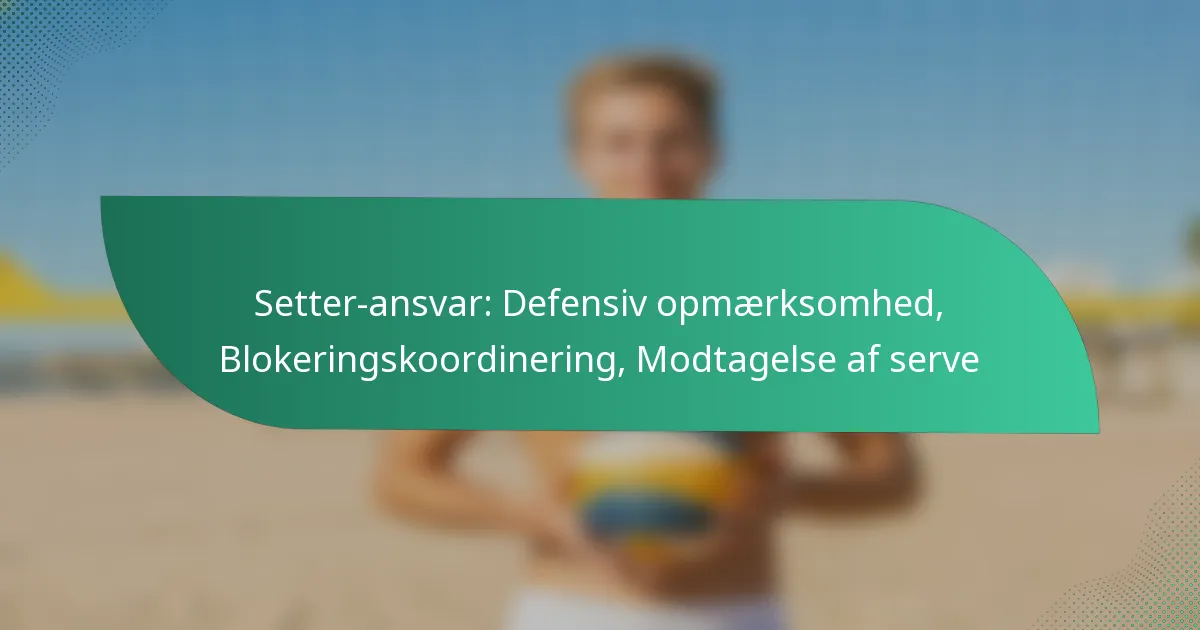 Setteren i volleyball er essentiel for både offensive og defensive strategier, med nøgleansvarsområder, der inkluderer defensiv opmærksomhed, blokkoordinering og modtagelse af server. Ved at opretholde en stærk defensiv opmærksomhed kan settere forudse spil og placere sig effektivt, mens blokkoordinering sikrer problemfri kommunikation og timing med holdkammerater. Deres rolle er afgørende for at orkestrere succesfulde spil og forbedre den samlede holdpræstation.
