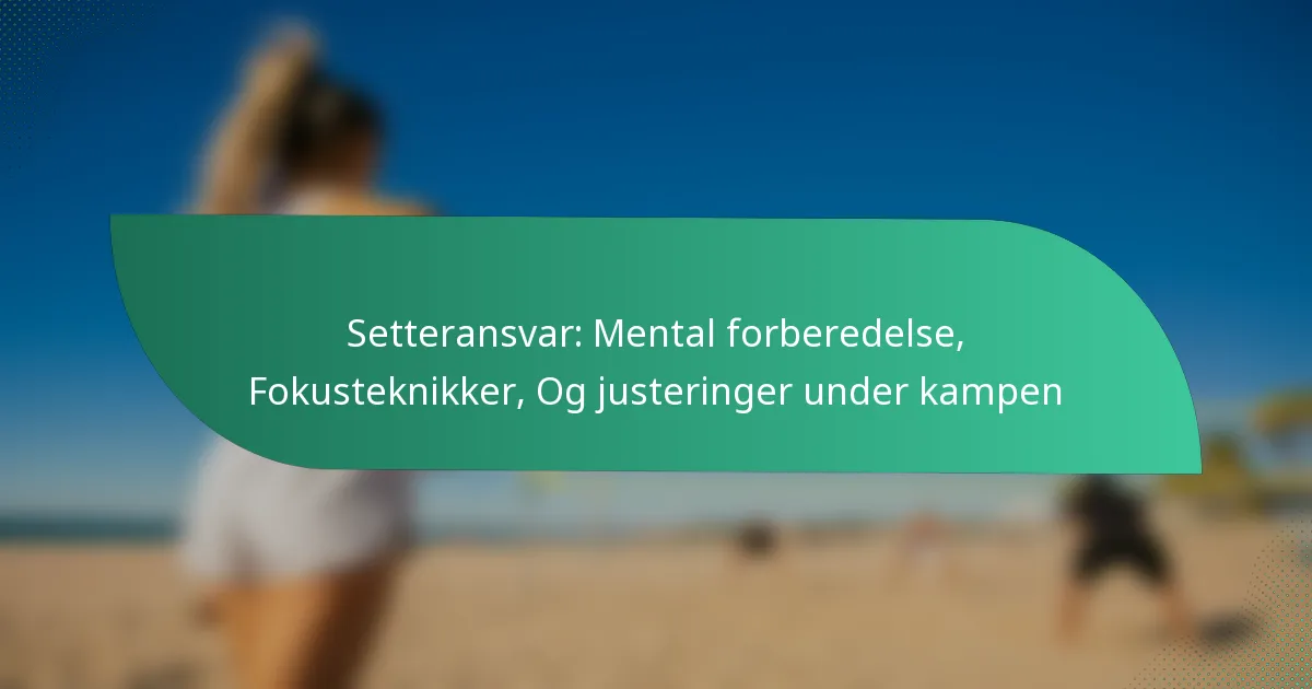 En setters rolle i volleyball strækker sig ud over blot at levere præcise opsætninger; den omfatter mental forberedelse, fokus teknikker og evnen til at tilpasse sig under kampene. Effektiv mental forberedelse opbygger selvtillid og reducerer angst, hvilket gør det muligt for setters at præstere under pres. Ved at anvende forskellige fokus teknikker kan setters forbedre deres koncentration og beslutningstagning, så de forbliver opmærksomme på spillets dynamik og foretager rettidige justeringer efter behov.