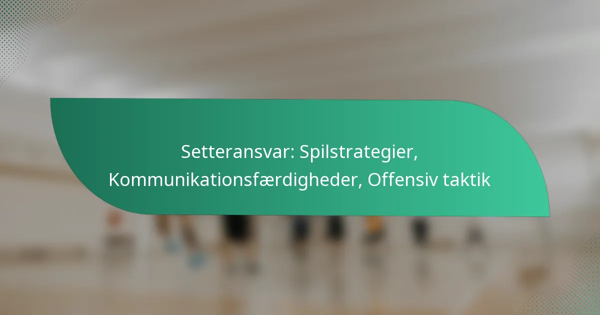 Spilstrategier forbedrer betydeligt en setters effektivitet ved at gøre det muligt for dem at skabe scoringsmuligheder og opretholde offensivt flow. Disse strategier involverer en kombination af beslutningstagning, kommunikation og taktisk udførelse, der kan tilpasses forskellige spilsituationer.