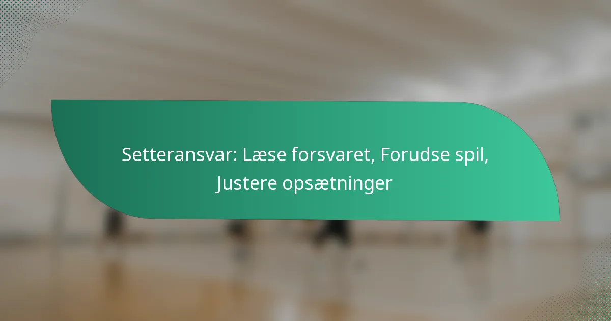 Settere justerer deres opsætninger under en kamp ved at læse forsvaret, forudse spil og kommunikere effektivt med holdkammerater. Denne proces involverer at genkende defensive formationer og træffe hurtige beslutninger for at optimere offensive strategier.